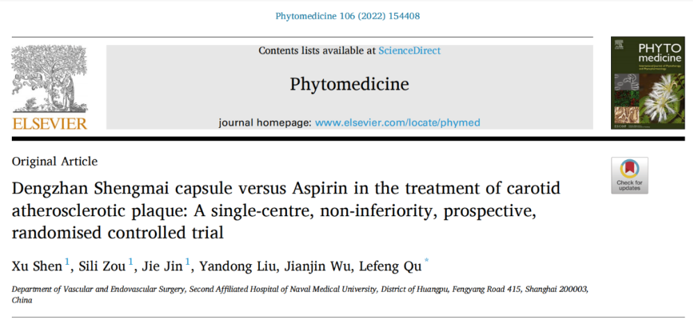 我公司產(chǎn)品燈盞生脈膠囊(以下縮寫為DZSM膠囊)在防治頸動(dòng)脈粥樣硬化臨床應(yīng)用中已表現(xiàn)出良好的綜合療效,有可能與阿司匹林相似或更有效。為此,海軍軍醫(yī)大學(xué)上海長征醫(yī)院血管外科的曲樂豐教授團(tuán)隊(duì)開展了一項(xiàng)基于早期頸動(dòng)脈斑塊患者人群的隨機(jī)對照研究,主要目的是驗(yàn)證DZSM膠囊治療頸動(dòng)脈粥樣硬化斑塊與阿司匹林相比的非劣效性,研究結(jié)果近期已發(fā)表在國際著名期刊《Phytomedicine》上。